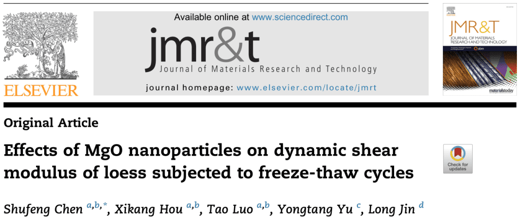 Shufeng Chen, Xikang Hou, Tao Luo, et al. Effects of MgO Nanoparticles on Dynamic Shear Modulus of Loess Subjected to Freeze-thaw Cycles[J]. Journal of Materials Research and Technology, 2022.18:5019-5031.