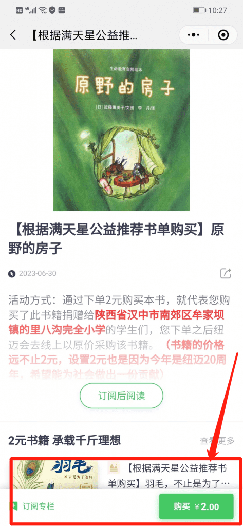 本次活動純公益性質(zhì),設(shè)置2元是因為今年正值紐邁20周年,所有書籍價格均不止2元。您下單后,紐邁會通過正規(guī)渠道,線上購買正版書籍贈送于里八溝的孩子們。
