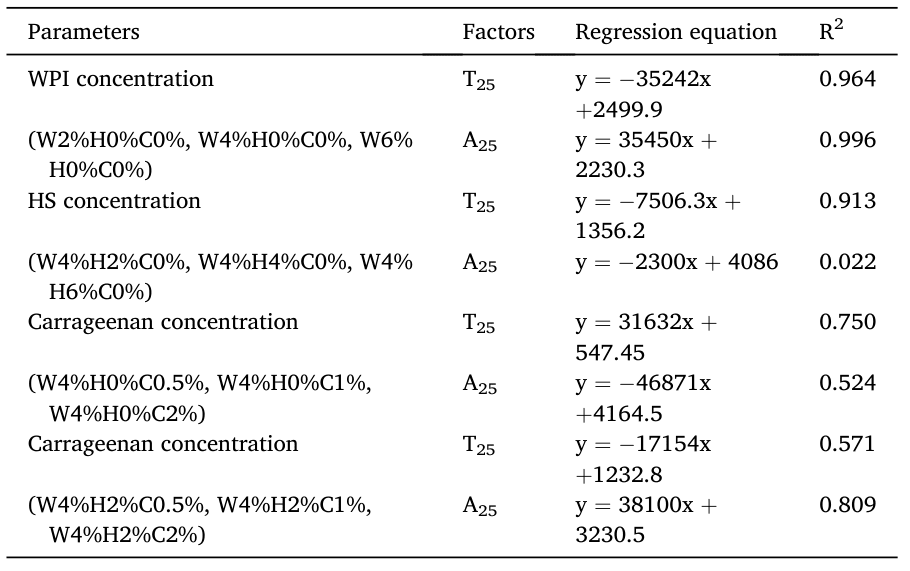 1)WPI、HS和卡拉膠濃度的升高會降低水流動性。乳化劑濃度通過影響其分子內或分子間相互作用,從而增加其與氫質子的結合能力。。