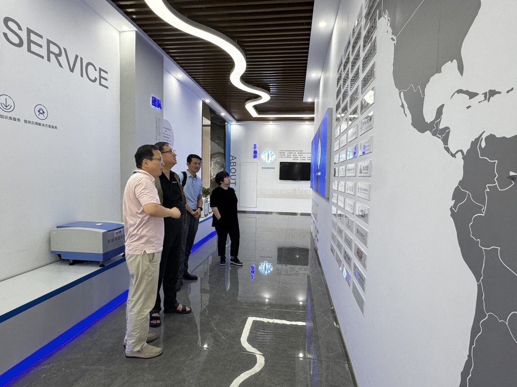 在紐邁分析董事長楊培強、總經理李向紅等人的陪同下,江雷院士先后參觀了公司歷程展廳、設備展廳、客戶體驗中心及產品生產線,全面了解了紐邁在技術研發、產品制造與應用服務等方面的綜合實力。楊培強董事長系統介紹了紐邁二十多年來堅持“政產學研用教”一體化的發展路徑,圍繞客戶實際應用場景,專注低場核磁共振技術的持續創新與儀器制造,實現了從無到有、從有到好、從好到精的跨越發展,逐步打破國外技術壟斷,在石油能源、巖土工程、食品農業、材料科學、生命科學等多個領域形成系統化的儀器產品與創新解決方案。