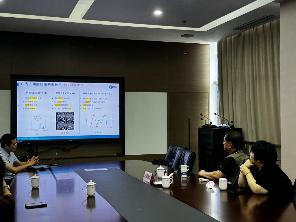 參觀結束后,雙方在會議室進行了深入的座談交流。聚焦于低場核磁技術在材料科學,特別是功能界面材料、多孔材料等前沿方向的深度應用。